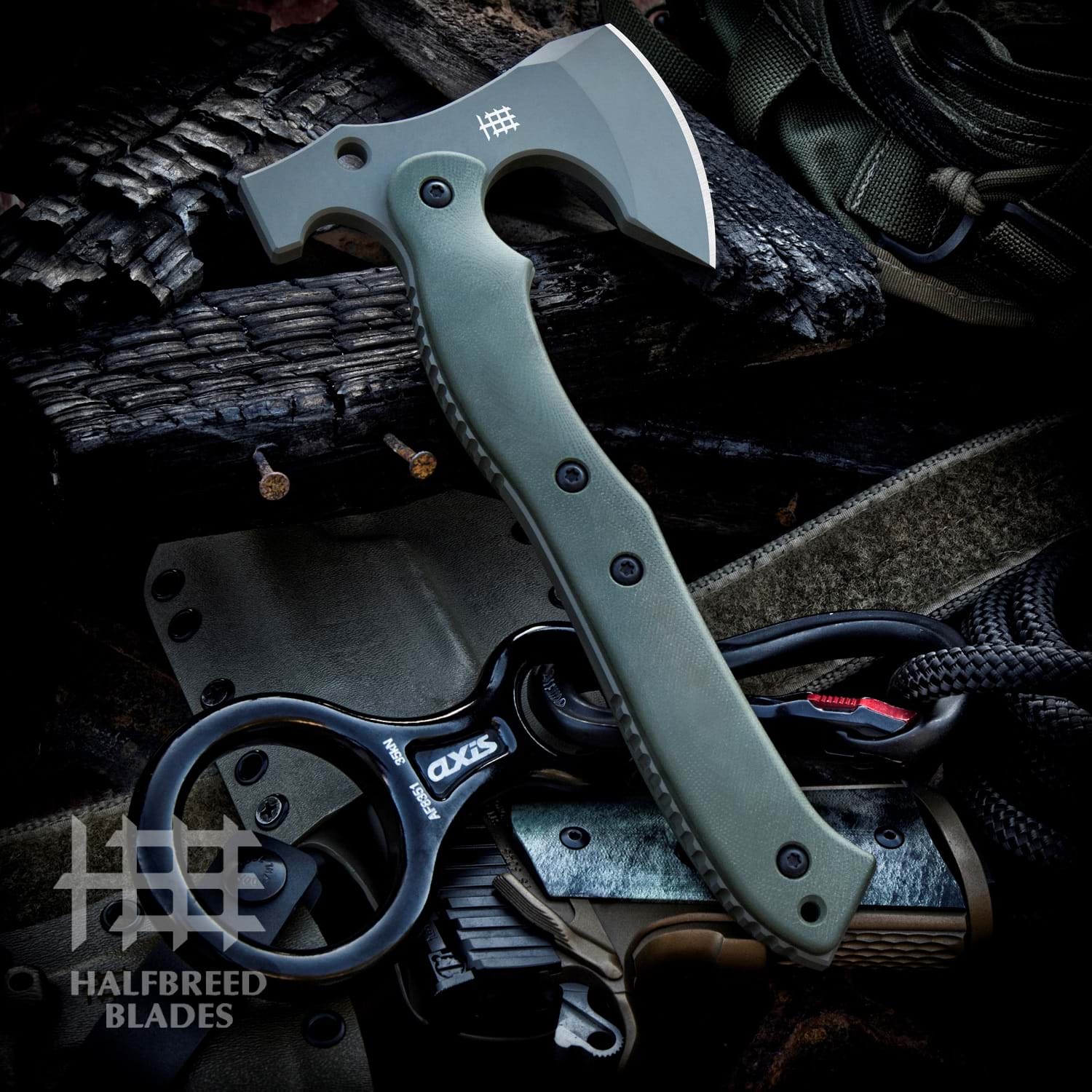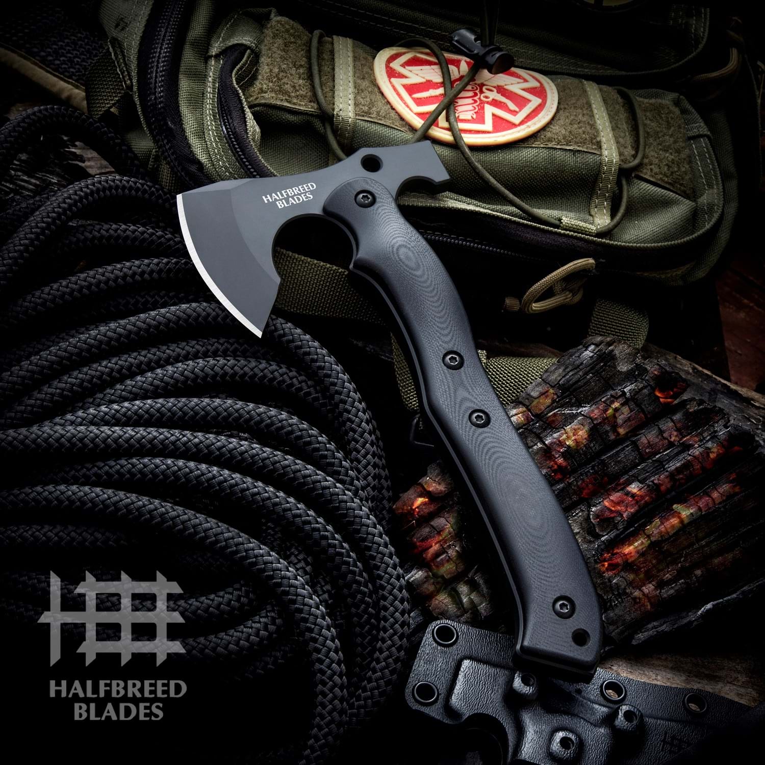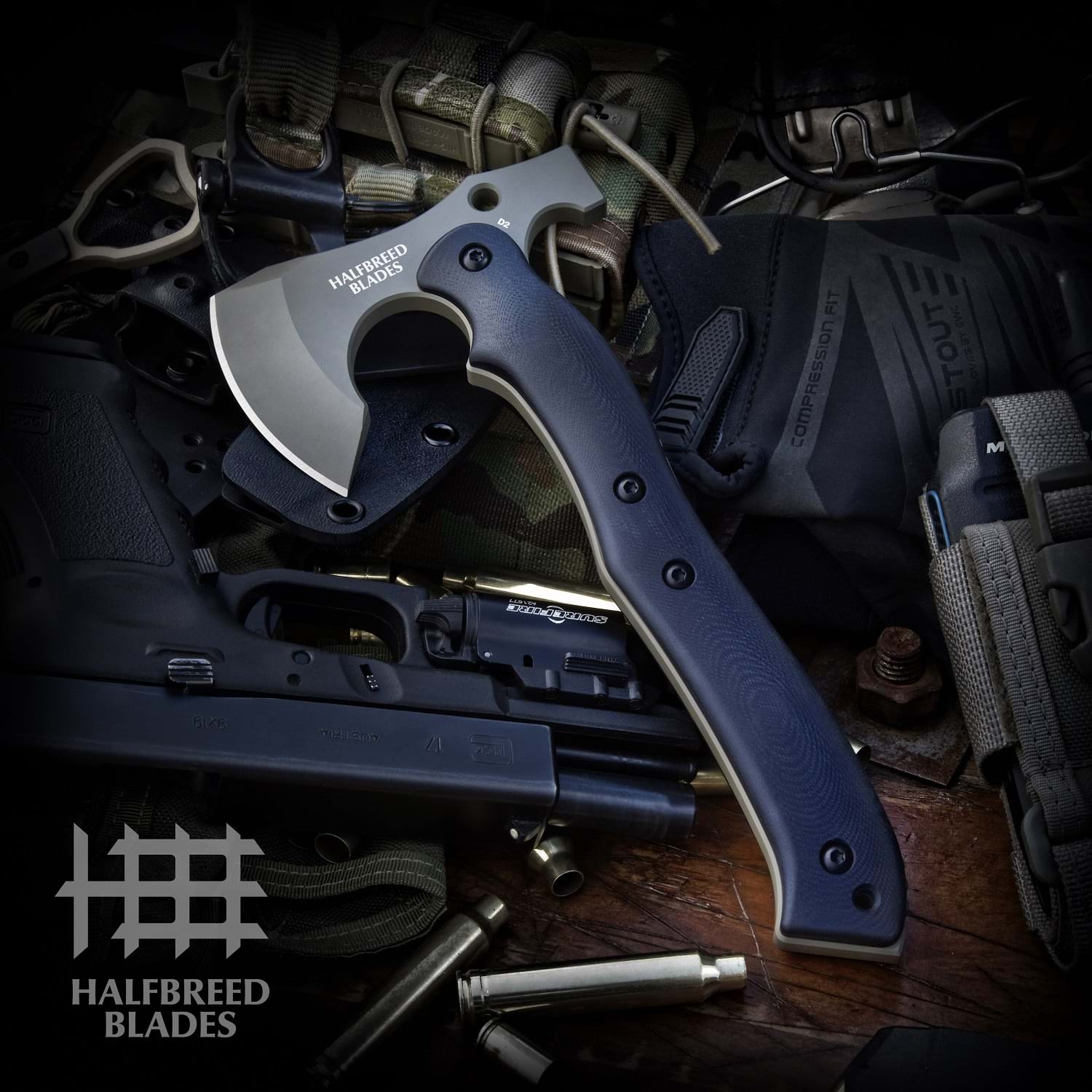 The CRA-01 (Compact Rescue Axe) from Halfbreed Blades, is an extremely compact, easy to reach cutting and impact tool, designed and built with no compromise in durability or performance. Made ready for extreme hard use, this multi-purpose tool is ideally suited for MOE, CQB, Rescue, and Survival roles and tasks.