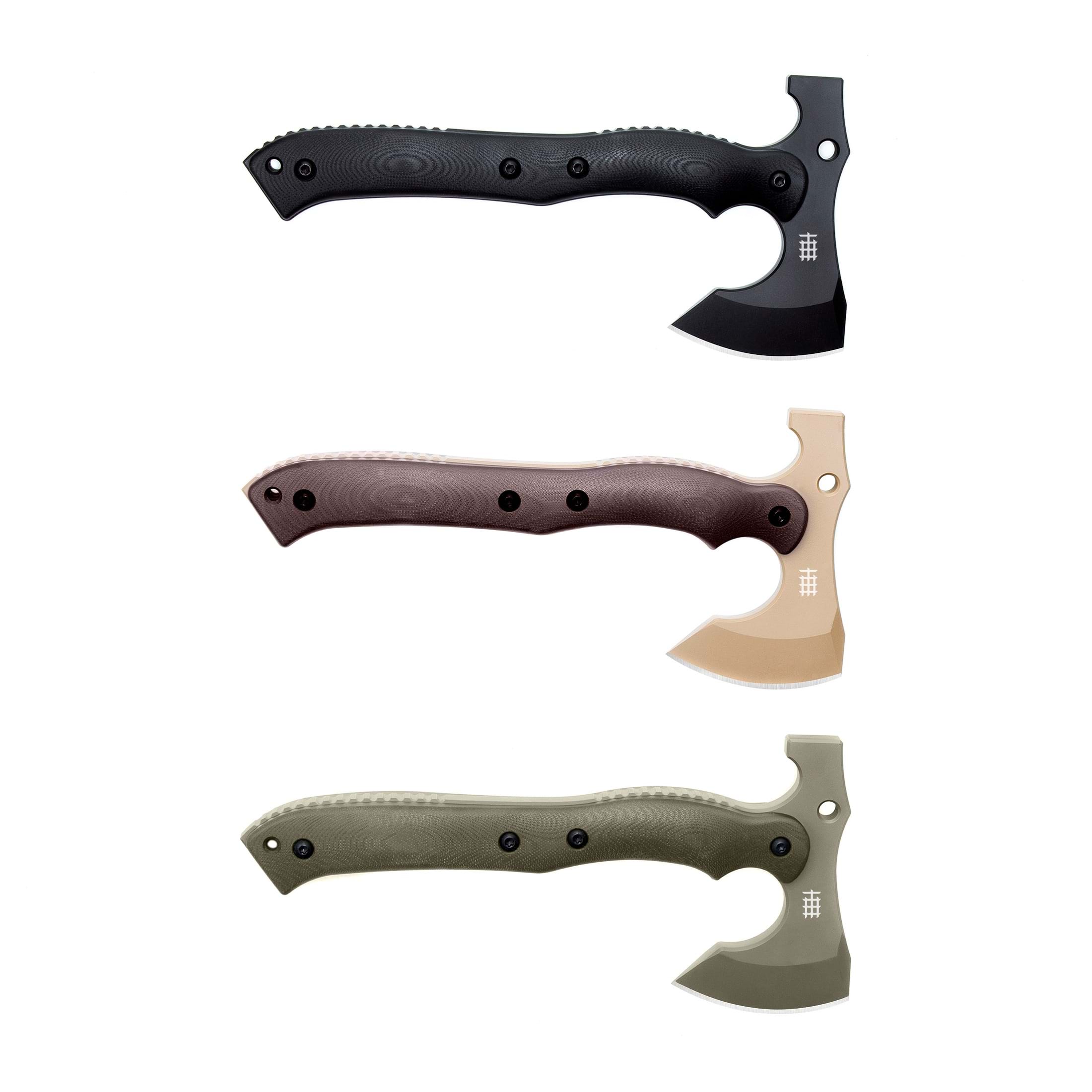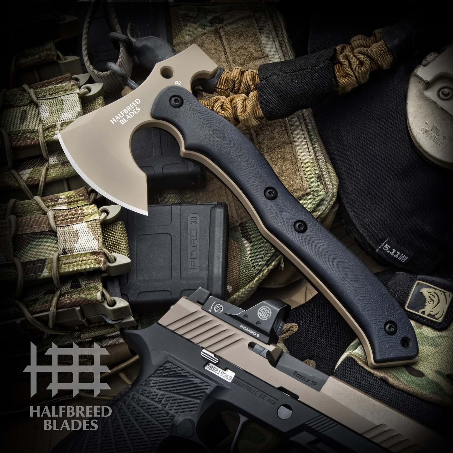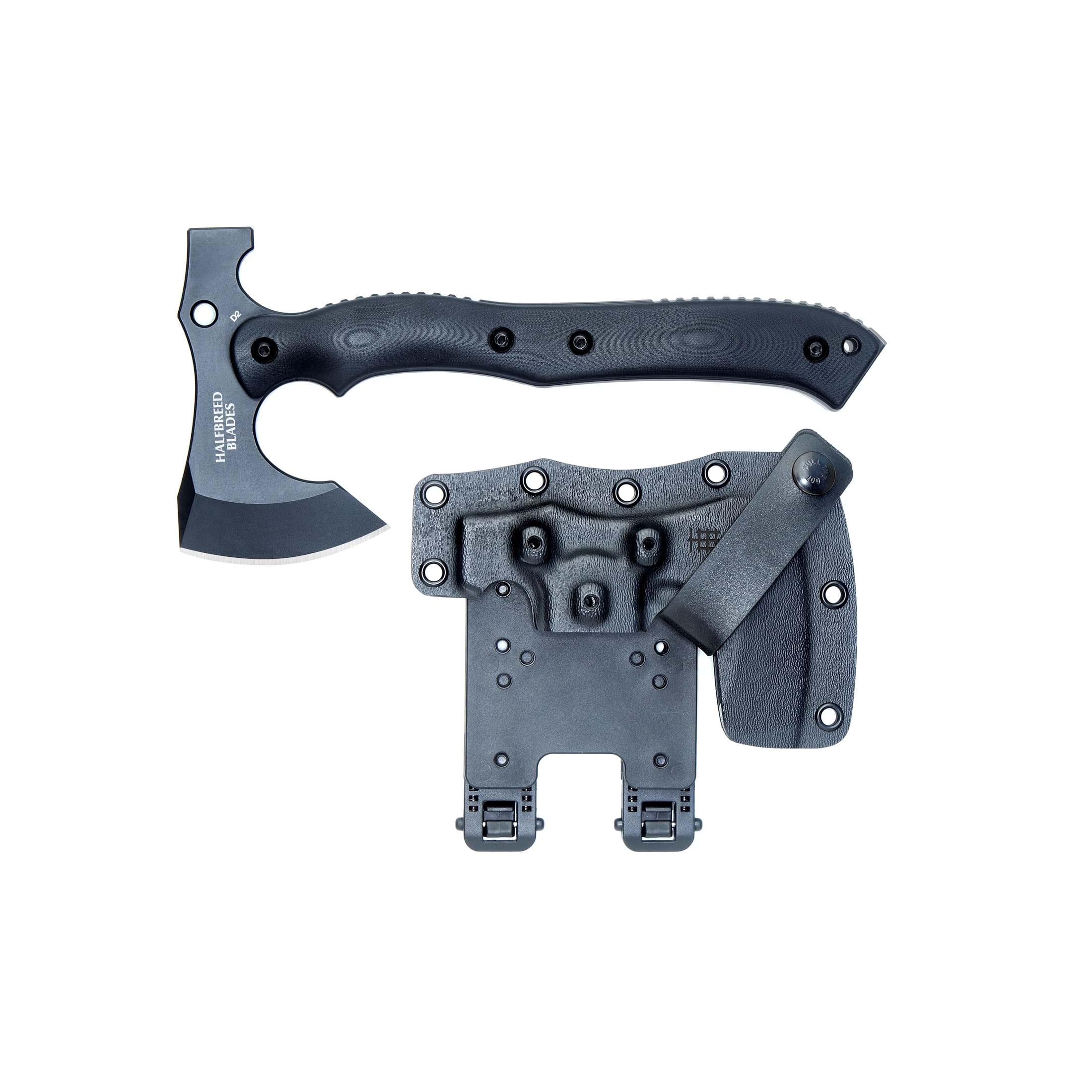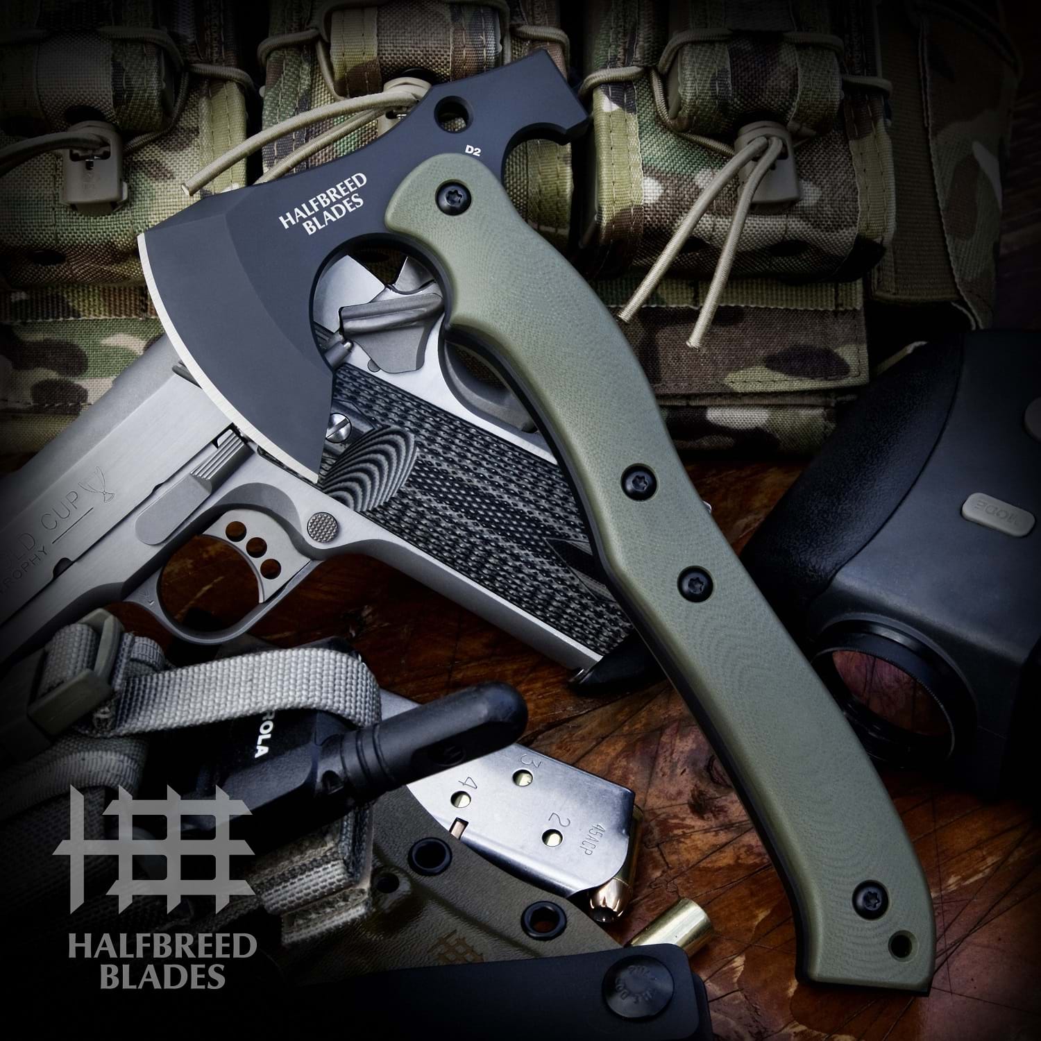 The CRA-01 (Compact Rescue Axe) from Halfbreed Blades, is an extremely compact, easy to reach cutting and impact tool, designed and built with no compromise in durability or performance. Made ready for extreme hard use, this multi-purpose tool is ideally suited for MOE, CQB, Rescue, and Survival roles and tasks.