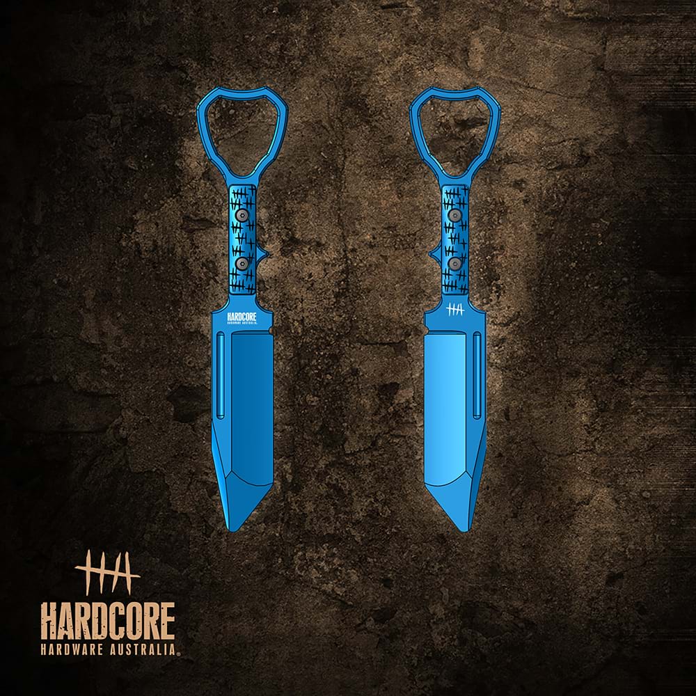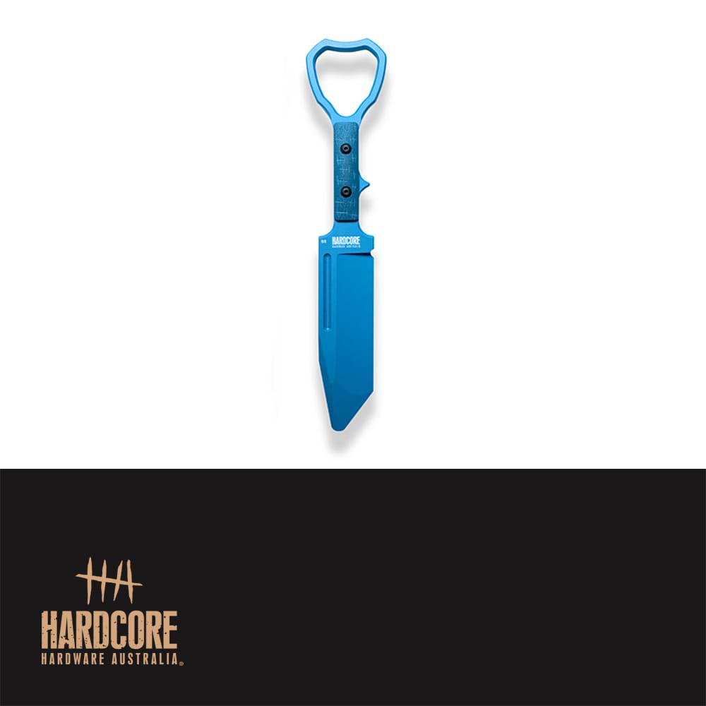 To facilitate real-world training scenarios the Hardcore Hardware Australia ASOT-02 Trainer model is almost identical in dimensions and weight to its live edged counterpart. The HIVIZ blue, non-sharpened 'safe edge' trainer is also fully compatible with the live edge sheath system (CARRY SYSTEM INCLUDED WITH MOLLE MOUNT).
