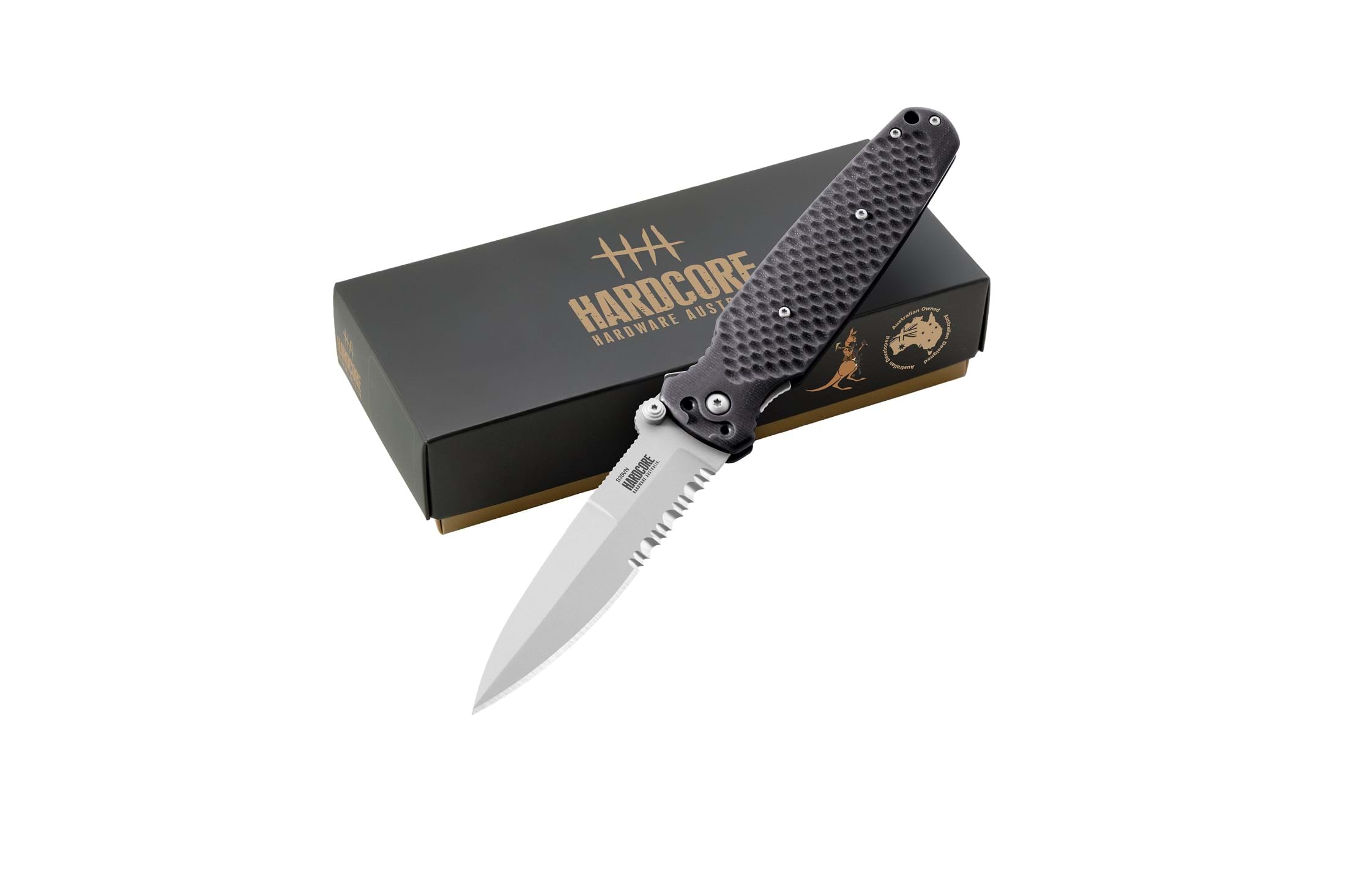 The COVERT 01 from Hardcore Hardware Australia is a classic, compact spear-point folding knife designed to balance minimal weight with impressive strength, cutting efficiency, and discreet deep-pocket carry.