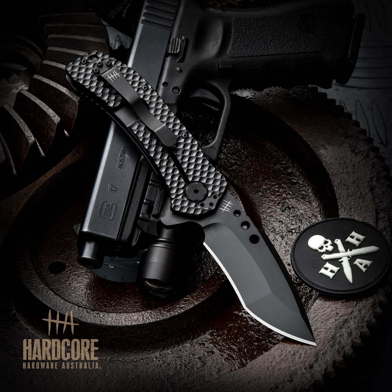 The MILF-01 from Hardcore Hardware Australia is a mid-sized Recurve utility folding knife, offering the optimum balance between weight, strength, and cutting power.