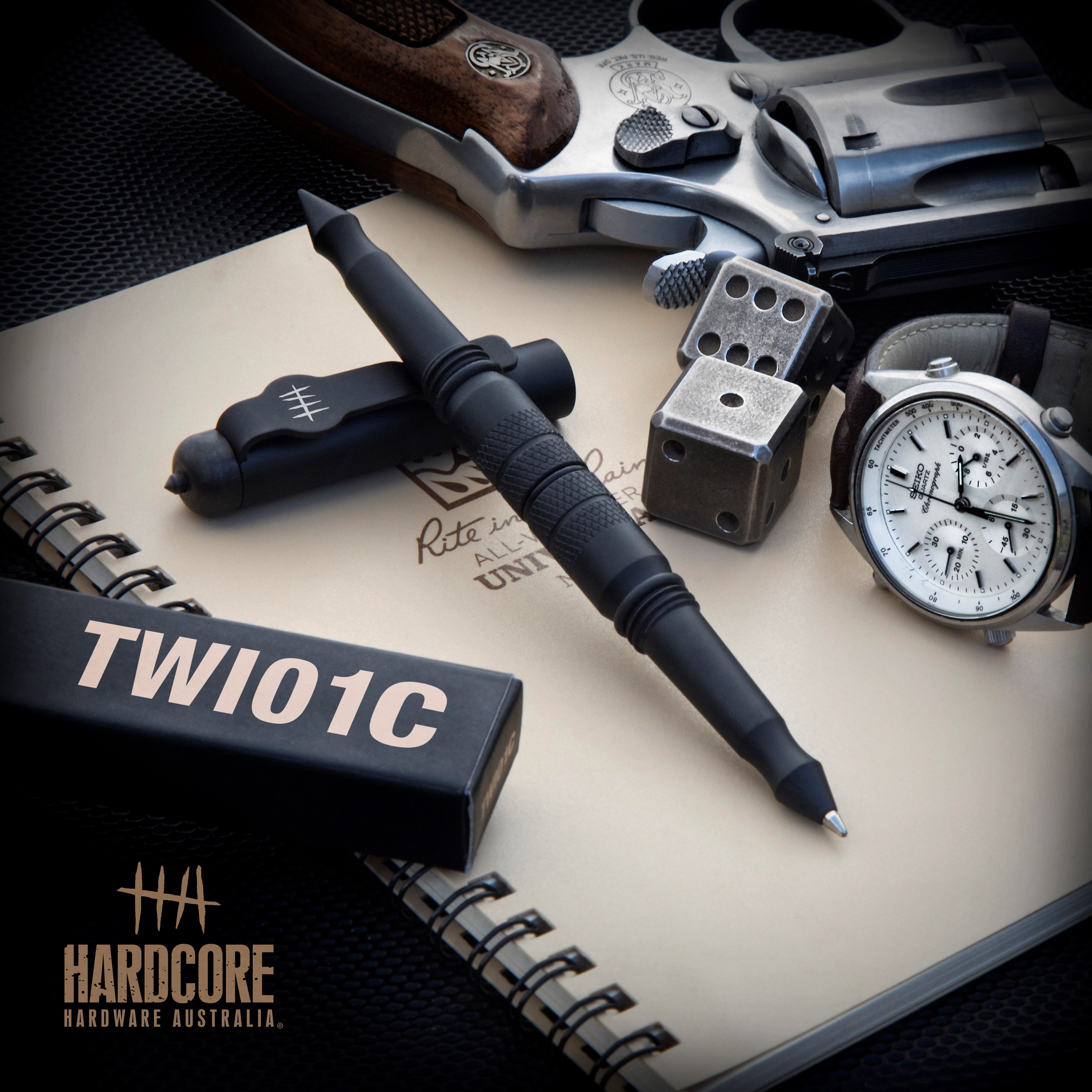 The Hardcore Hardware Australia TWI-01C features a dome shaped crown with integrated tungsten carbide glass breaker. At the opposing end we have incorporated a pointed tip for sensitive investigative work. The entire shaft of the pen is constructed from 6000 series, non-reflective; black anodized aluminium for extreme longevity and wearability.