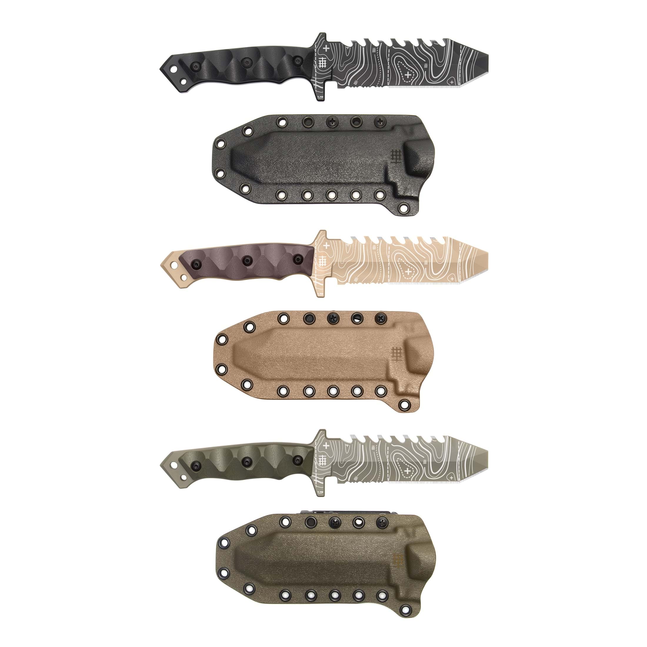 Enhancing its utility, the ERK-01 TOPO features a fully chamfered tang and handguard, partial blade serrations, an extended hammer pommel equipped with jimping, and a lanyard point. Safeguarding against corrosion is a resilient Teflon coating.