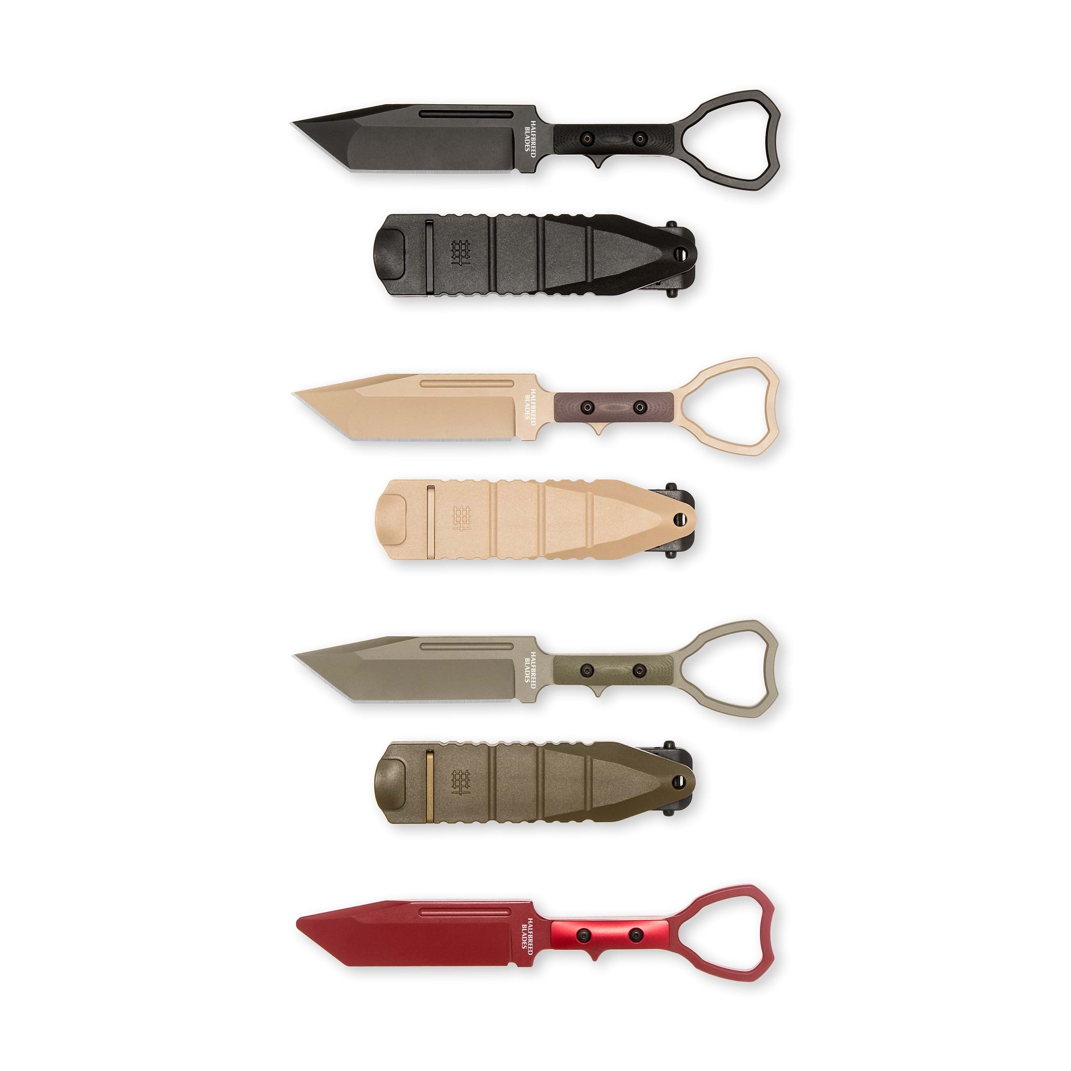 To better simulate practical training scenarios, the CCK-02 Trainer is made from steel and is virtually identical in weight to the live edge variant. The non-sharpened safe edge Trainer is universally compatible with the live blade carry system.